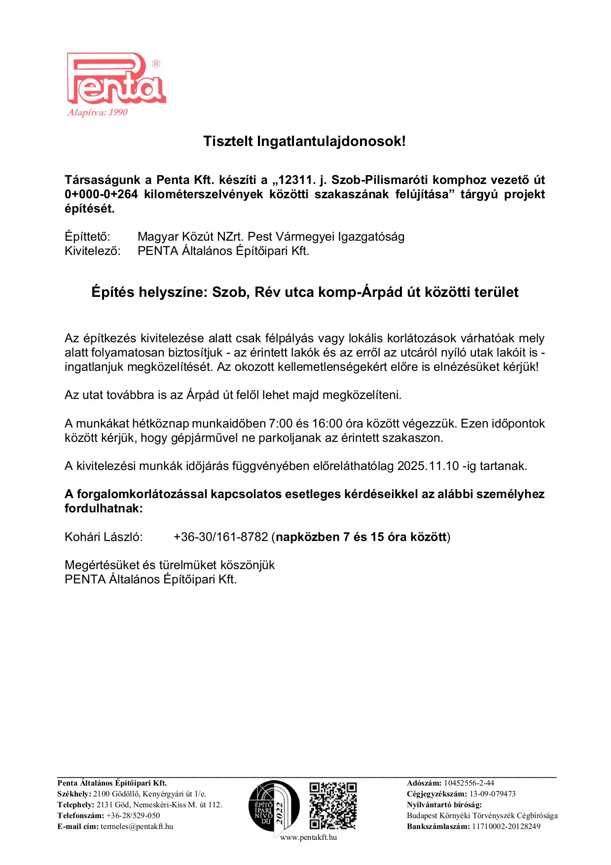 A MÁV Személyszállítási Zrt. tájékoztatása alapján csatoljuk a 2025. szeptember 29-től 2025. október 3-ig Verőce – Nagymaros állomások között érvényes Forgalmi technológia utastájékoztató hirdetményeit:
