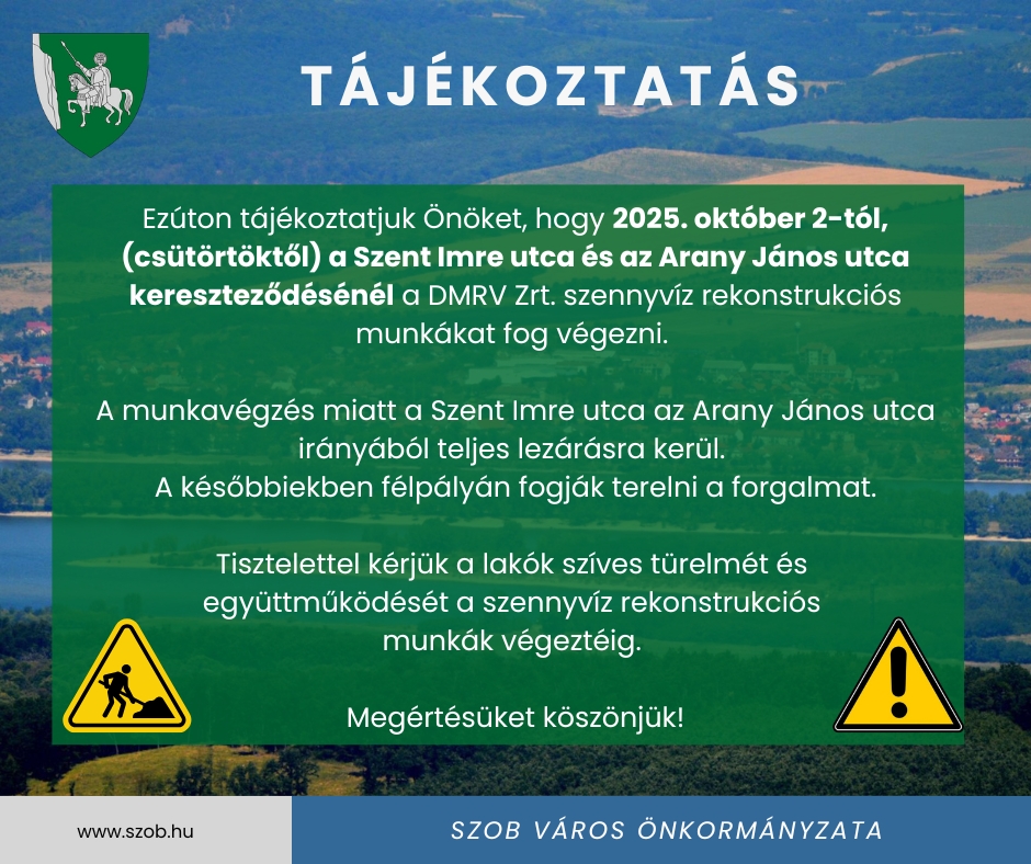 Tisztelettel meghívom Önt Szob Város Önkormányzat Képviselő-testületének soron következő ülésére.